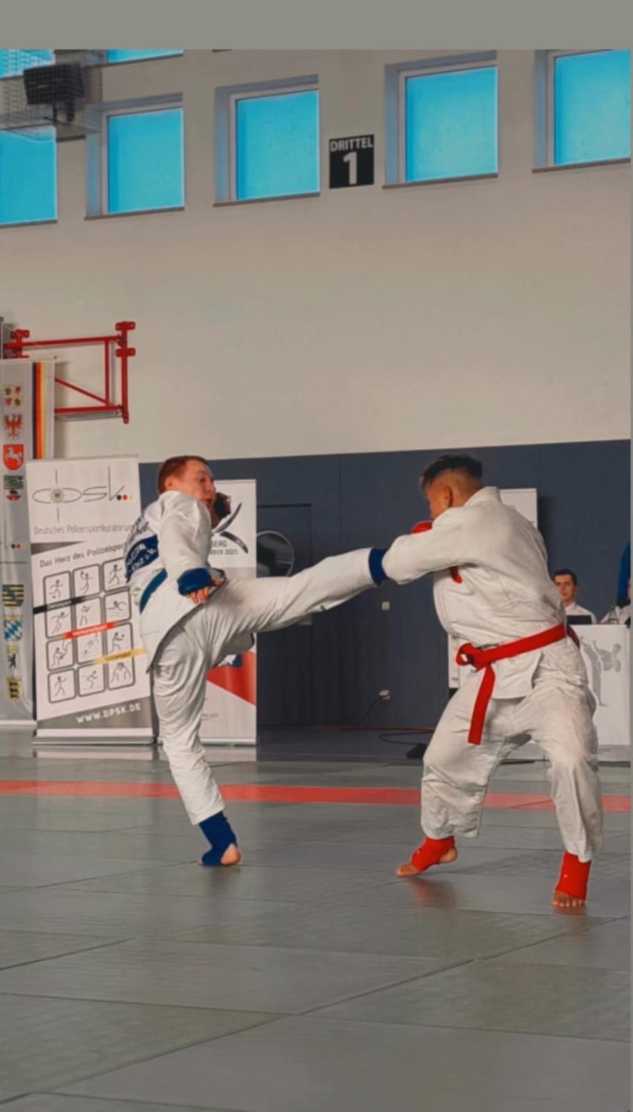 Für Maksim Lyuft war der heutige Tag (12.11.25) ein ganz besonderer Meilenstein: Sein erster offizieller Einsatz als junger Polizeikommissaranwärter führte ihn direkt zu den 15. Deutschen Polizeimeisterschaften (DPM) im Sportpark Rabenberg. Als Mitglied des Bundeskaders im Brazilian Jiu-Jitsu (BJJ) ist Maksim vor allem für seine Stärke am Boden bekannt – doch diesmal stellte er sich einer neuen Herausforderung: dem Ju-Jutsu Fighting, einer Disziplin, die neben Bodenkampf auch Schlag-, Tritt- und Wurftechniken umfasst. Mit großem Ehrgeiz, Disziplin und Wettkampfgeist ging er an den Start, um zu zeigen, dass er auch in diesem vielseitigen Kampfsystem bestehen kann.