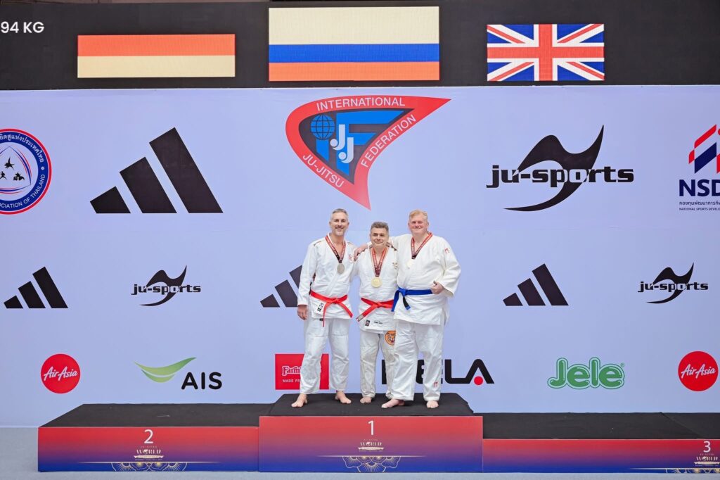 Ebenfalls bei seinem ersten internationalen Start trat Patrik am Sonntag in der Kategorie Master 4, Fighting +94 kg, an. Bereits der Vorrundenkampf gegen seinen späteren Finalgegner, Mickael Bouffart aus Frankreich, war äußerst spannend: Nach zwei schnellen Körpertreffern lag Patrik zunächst im Rückstand. Der Franzose versuchte einen Schulterwurf im Part 2, den Patrik jedoch geschickt abwehrte und selbst in den Haltegriff überging. Bei einem Stand von 9:10 konnte Patrik durch mehrere gezielte Wertungstreffer zum Kopf in den letzten 30 Sekunden die Führung übernehmen und gewann schließlich mit 13:10 Punkten – bei insgesamt fünf Ippons in Part 1.