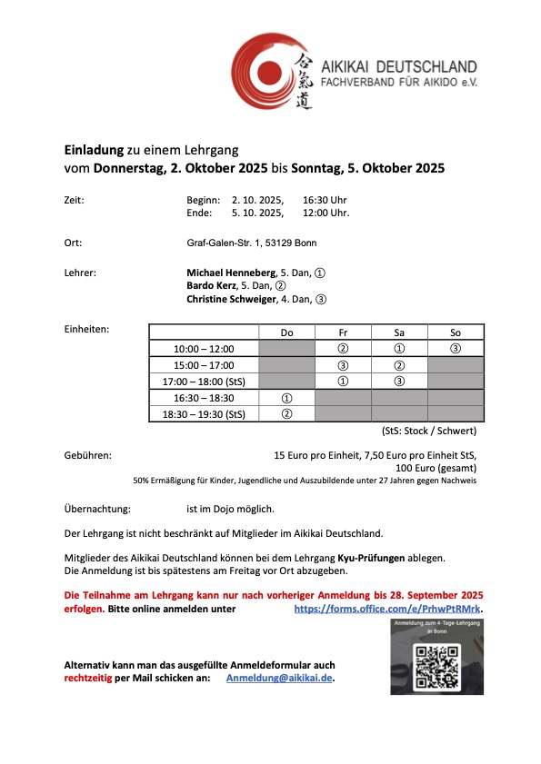 Der Lehrgang ist nicht beschränkt auf Mitglieder im Aikikai Deutschland.