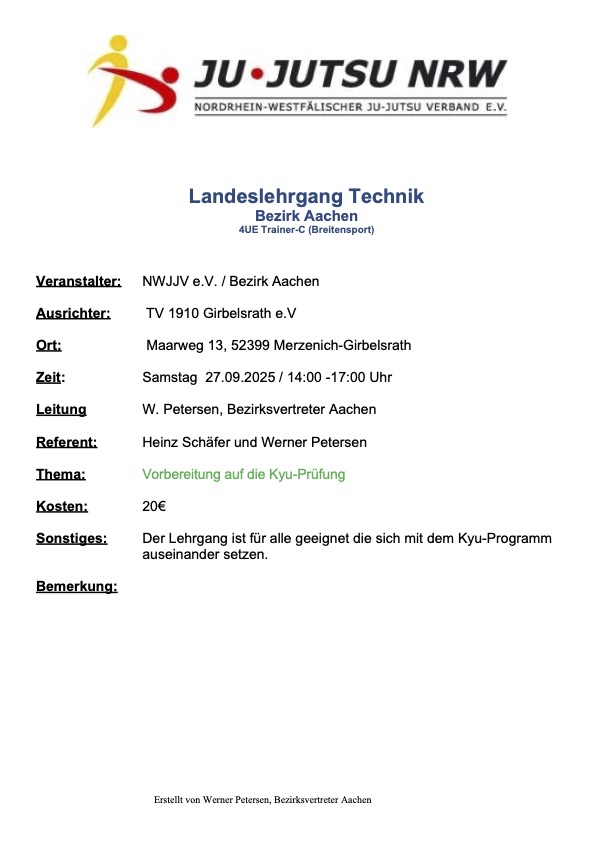 27Sep14:0017:00Landeslehrgang Technik Vorbereitung auf Kyu-Prüfung