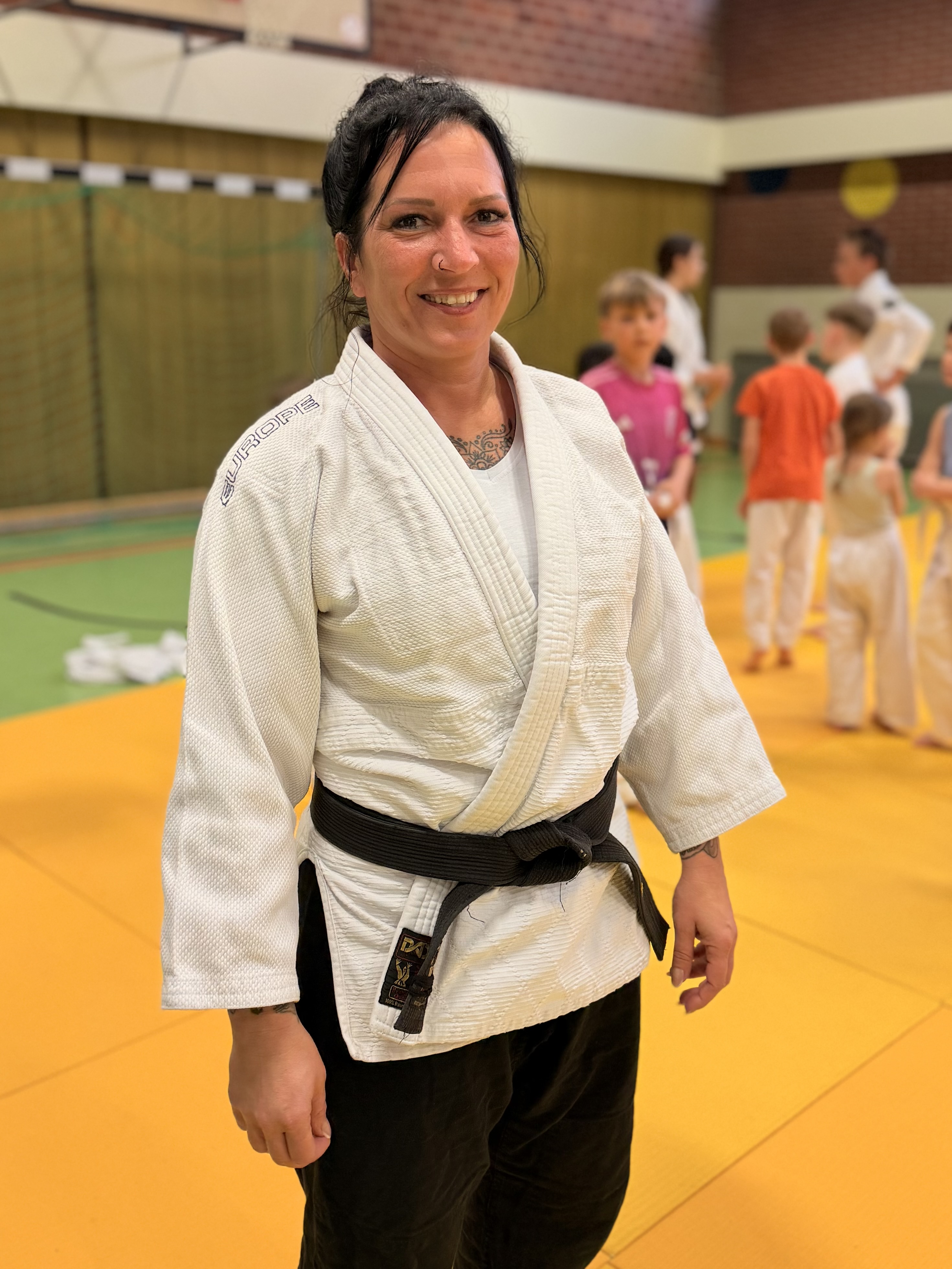 Mit viel Geduld und Einfühlungsvermögen begleitet sie die Kinder beim Erlernen der Ju-Jutsu-Techniken und vermittelt Freude an Bewegung und sportlichem Miteinander.